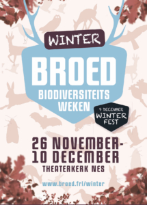 Deze workshop is onderdeel van Winter-BROED, biodiversiteitsweken. Met een expositie, inspiratiesessies en een Winterfest dompelen we Theaterkerk Nes twee weken lang om tot een winters biodivers festijn. Bekijk het programma van Winter-BROED via broed.frl/winter